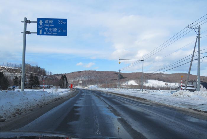 午後2時過ぎ、留辺蘂、国道39号から右折で国道242号、金華方向