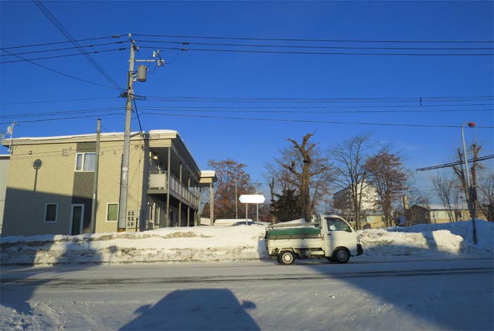 午前7時40分、松浦水産駐車場裏の通りを北3条通り側から北4条通り方向