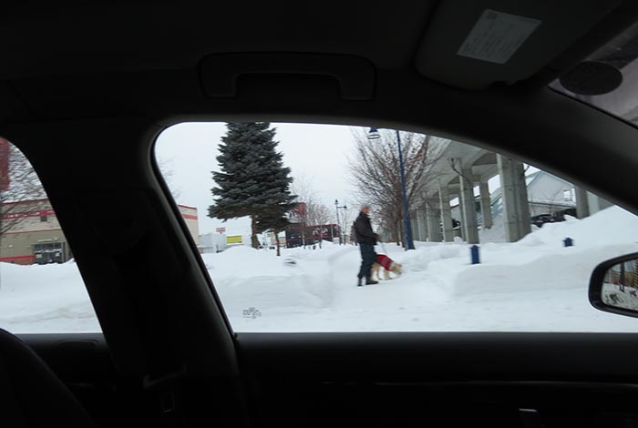 前方がJR石北本線高架橋、写真右が北見駅方向