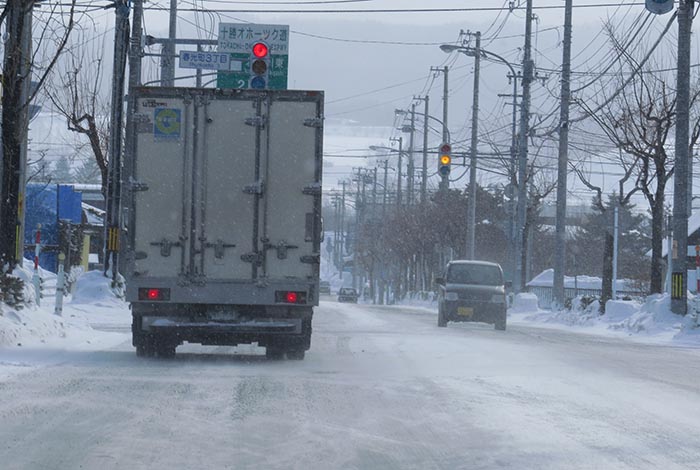 前方がJR石北本線高架橋、写真右が北見駅方向