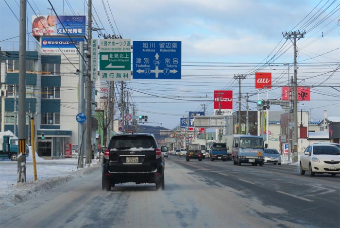 国道39号、北見トヨペット前からとん田通り交差点方向