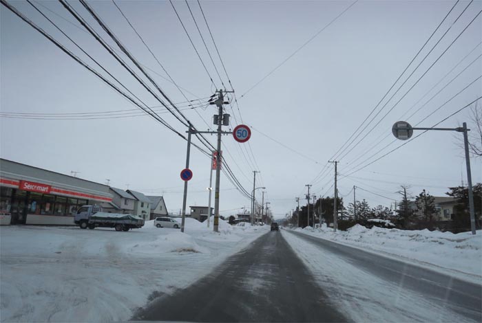 午前7時50分、南岸通り、野付牛自動車学校前から無加川町方向
