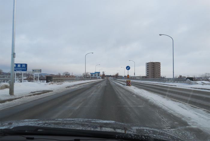 写真中央、堤防の向こうは無加川を挟んで工業技術センター前の西5号線南大通り交差点