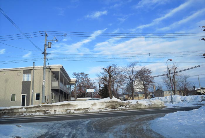 午前7時40分、松浦水産駐車場裏の通りを北3条通り側から北4条通り方向