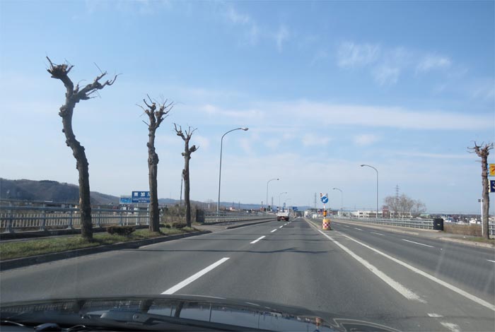 午前7時50分、とん田通り、北見中央病院