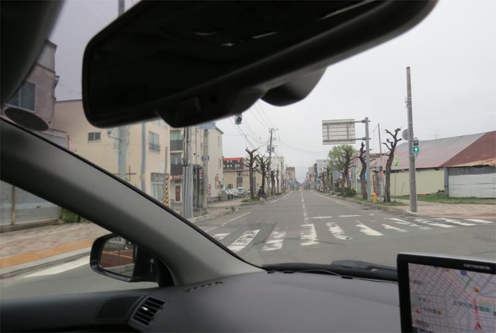 末広町の南岸通り、西4号線バス停前から野付牛自動車学校方向
