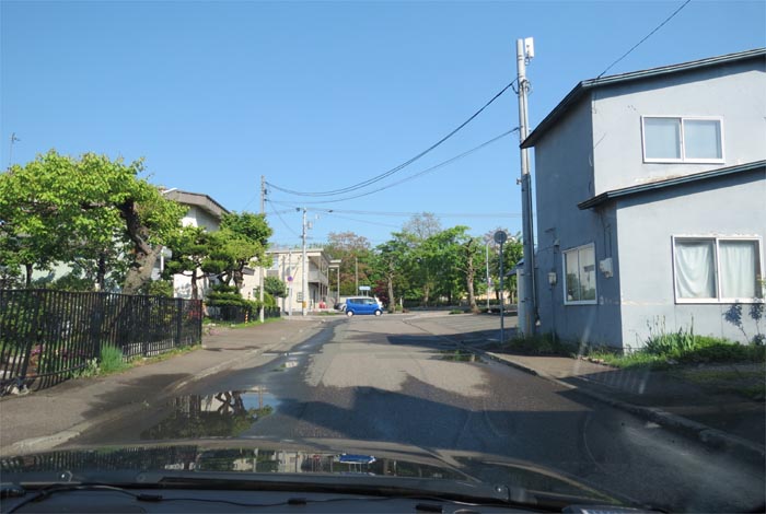 午前7時40分、松浦水産駐車場裏の通りを北3条通り側から北4条通り方向