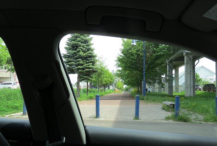 前方がJR石北本線高架橋、写真右が北見駅方向