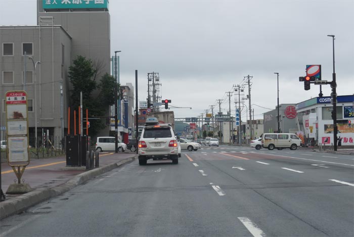 午前7時50分、北4条通りの国道39号交差点から緑園通り方向