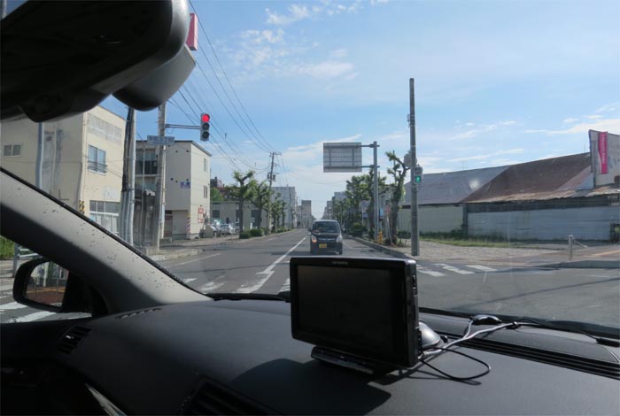 南岸通り、野付牛自動車学校前、奥がとん田通りの交差点