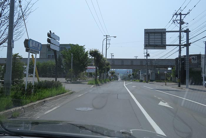 前方がJR石北本線高架橋、写真右が北見駅方向