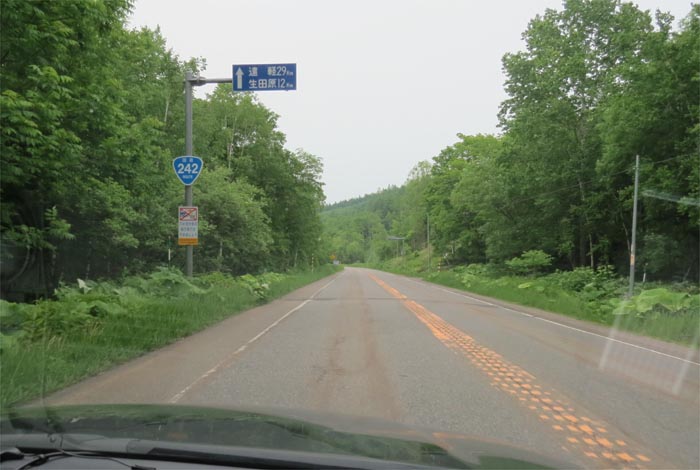 午後2時20分、国道242号、金華峠頂上側から下りで生田原の清里方向