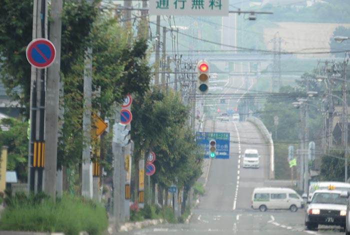 前方がJR石北本線高架橋、写真右が北見駅方向