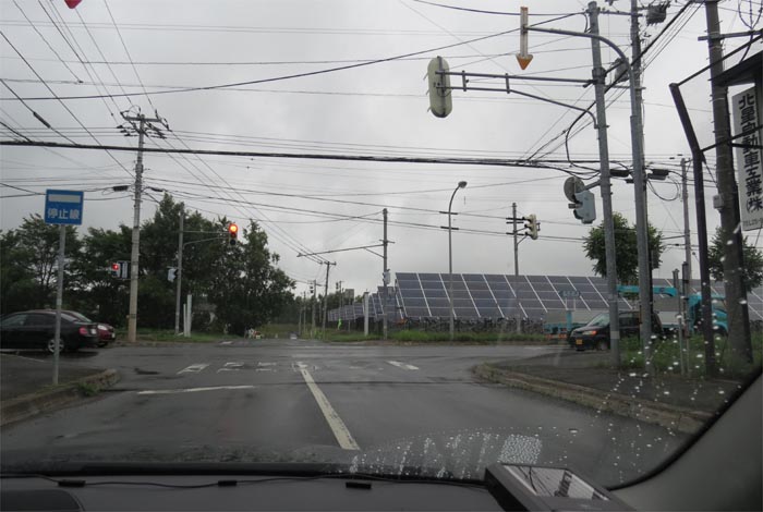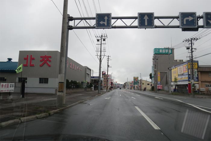 南岸通り、野付牛自動車学校前、奥がとん田通りの交差点