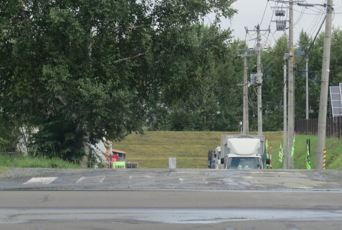 交差点から奥が無加川の右岸堤防で写真奥が国道39号方向