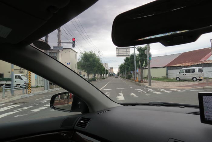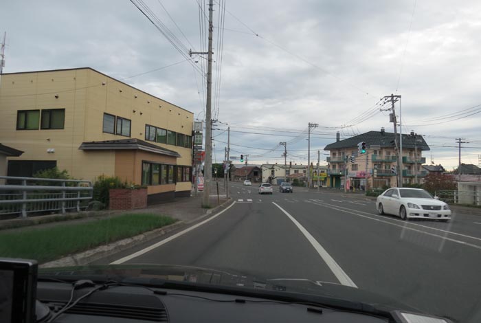 南岸通り、野付牛自動車学校前、奥がとん田通りの交差点
