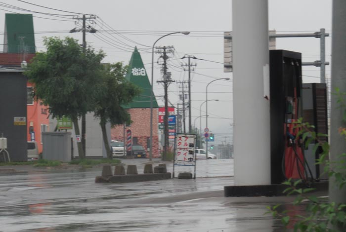 南岸通り、野付牛自動車学校前、奥がとん田通りの交差点
