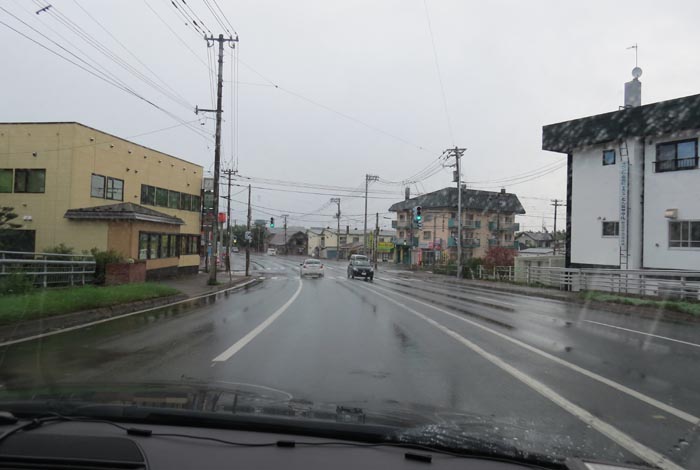南岸通り、野付牛自動車学校前、奥がとん田通りの交差点
