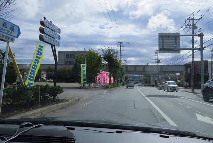 前方がJR石北本線高架橋、写真右が北見駅方向