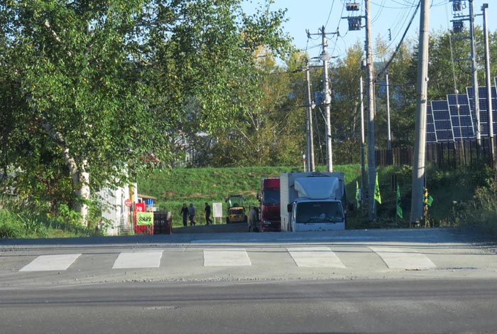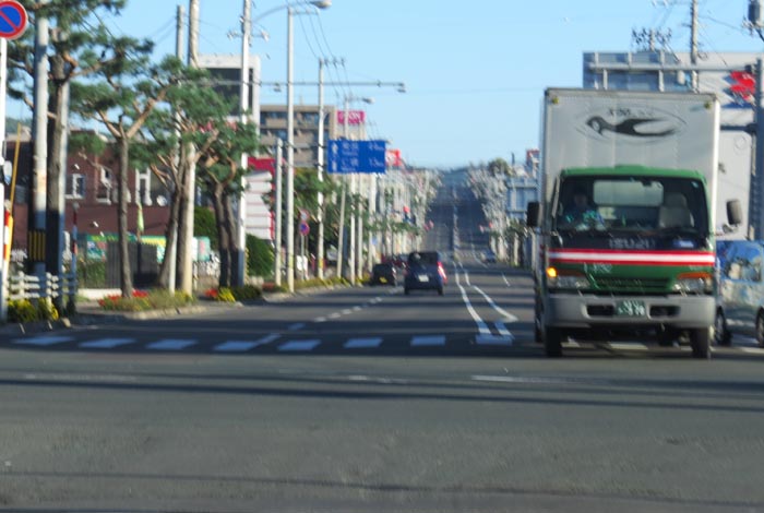 末広町の南岸通り、西4号線バス停前から野付牛自動車学校方向