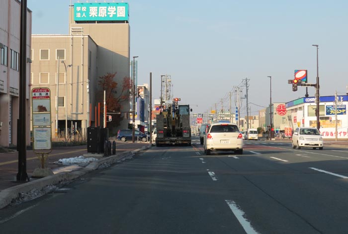 午前7時30分、北4条通りの国道39号交差点から緑園通り方向