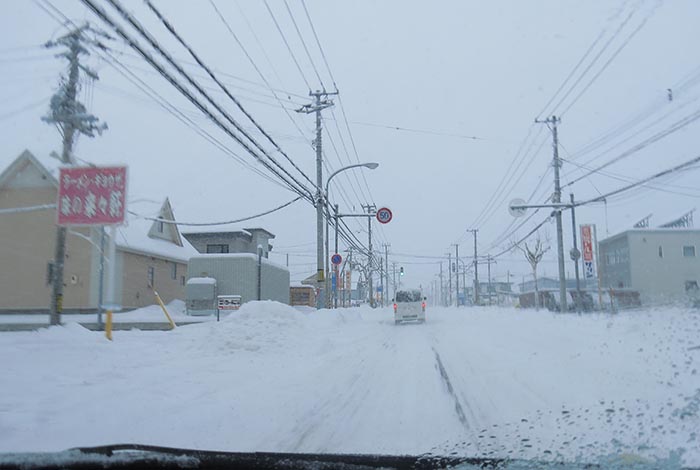 午前7時30分、南岸通り、野付牛自動車学校前から無加川町方向