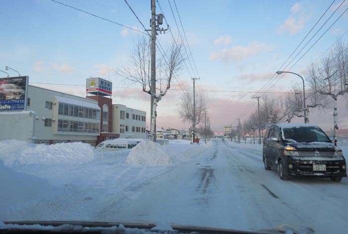 午前7時30分、南岸通り、野付牛自動車学校前から無加川町方向