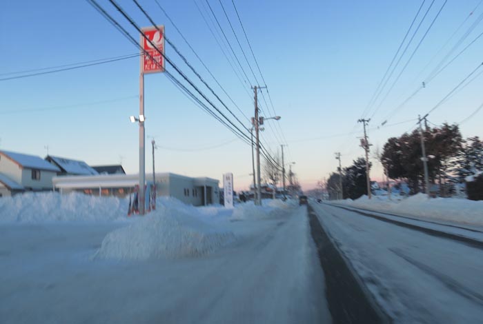 午前7時30分、南岸通り、野付牛自動車学校前から無加川町方向