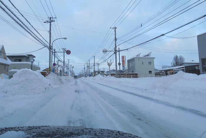 午前7時30分、南岸通り、野付牛自動車学校前から無加川町方向