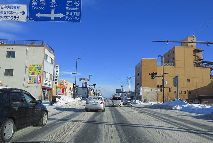 国道39号、五差路から北見駅方向