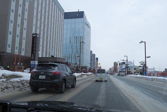 国道39号、五差路から北見駅方向
