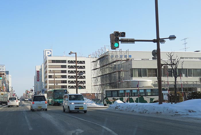 国道39号、大通り東4丁目交差点から左の仁頃通り側