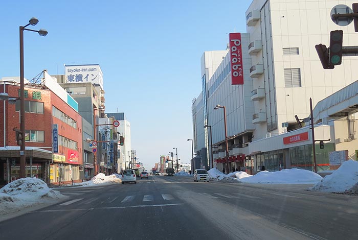 国道39号、公園町の千葉クリニックから東6号線昭和通り交差点方向