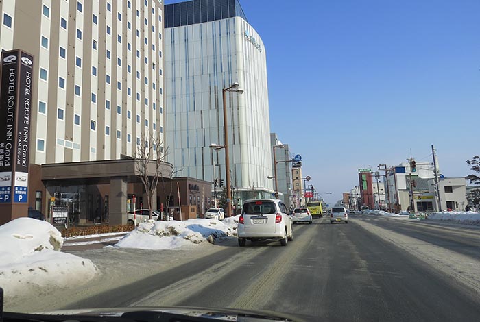 東2丁目通り交差点を左に入ると北見赤十字病院方向