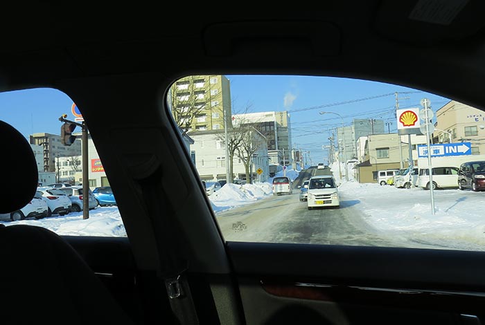 午前9時20分、国道39号の五差路から左は石北峠・旭川・札幌方面