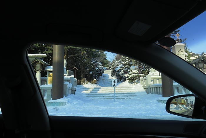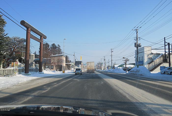 国道39号、北見神社の鳥居前から東9丁目歩道橋方向