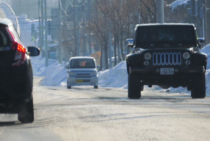 前方がJR石北本線高架橋、写真右が北見駅方向