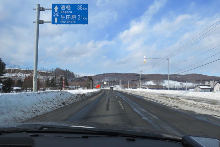 午後2時10分、留辺蘂、国道39号から右折で国道242号、金華方向