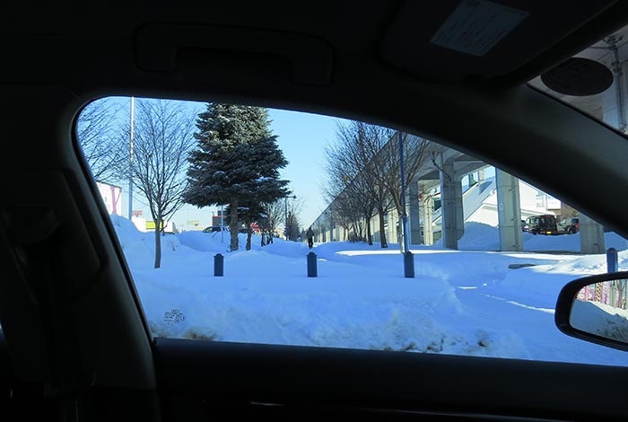 前方がJR石北本線高架橋、写真右が北見駅方向
