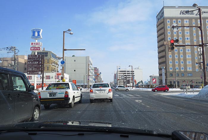 東2丁目通り交差点を左に入ると北見赤十字病院方向