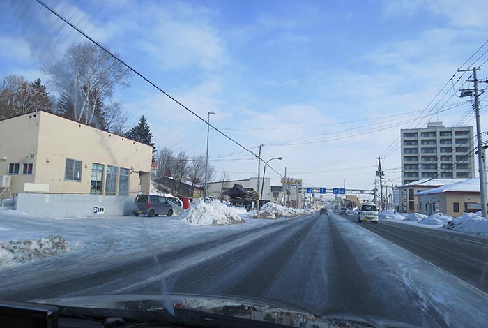 午前9時20分、国道39号の五差路から左は石北峠・旭川・札幌方面