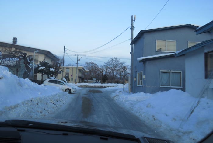 午前7時30分、松浦水産駐車場裏の通りを北3条通り側から北4条通り方向