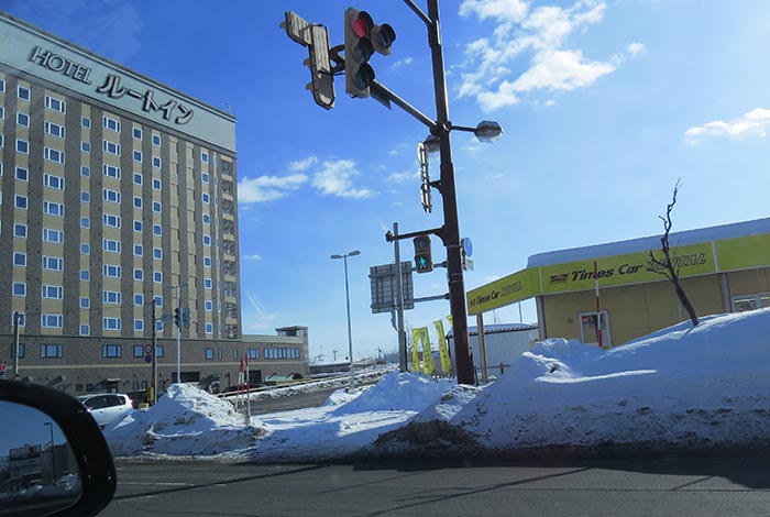 東2丁目通り交差点を左に入ると北見赤十字病院方向