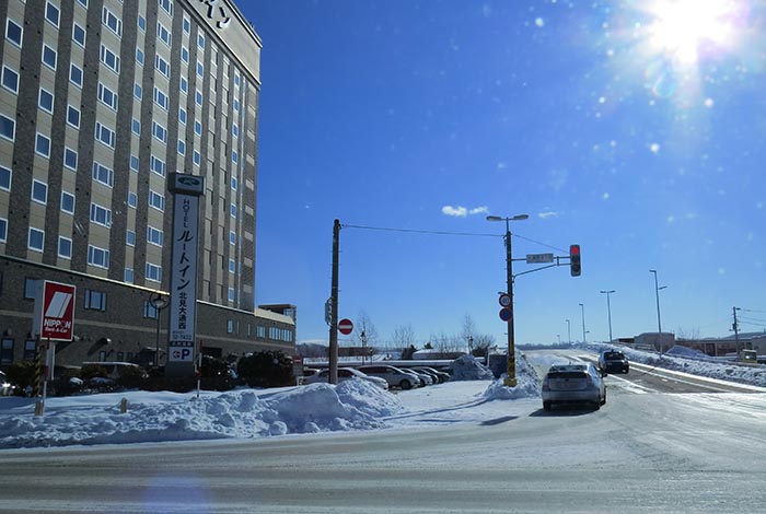 東2丁目通り交差点を左に入ると北見赤十字病院方向
