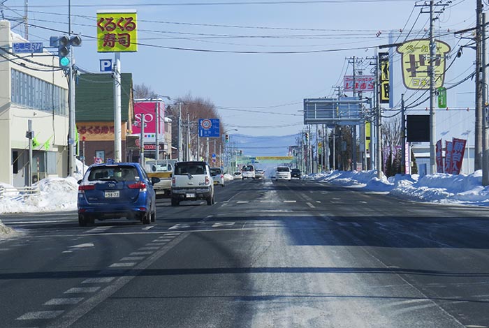 国道39号、五差路から北見駅方向
