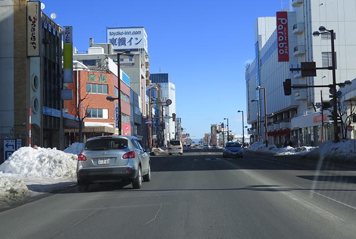 国道39号、大通り東4丁目交差点から左の仁頃通り側