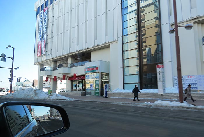 西4丁目通りの奥がオホーツクビールおよび山下通りの交差点方向