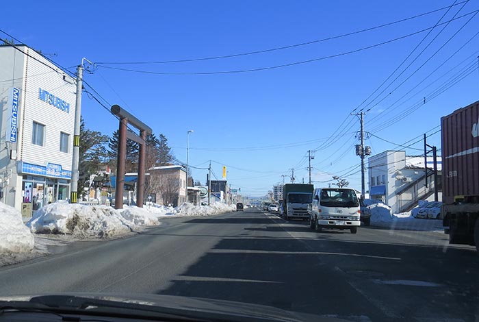 国道39号、北見神社の鳥居前から東9丁目歩道橋方向