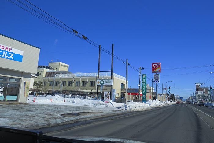 東2丁目通り交差点を左に入ると北見赤十字病院方向