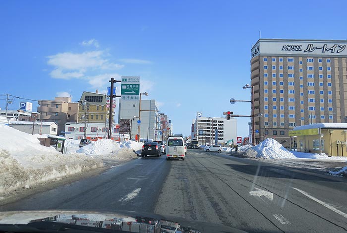 東2丁目通り交差点を左に入ると北見赤十字病院方向